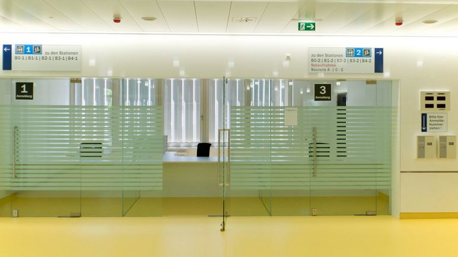 Anmeldung im Eingangsbereich, anschließend Kabine 15-17