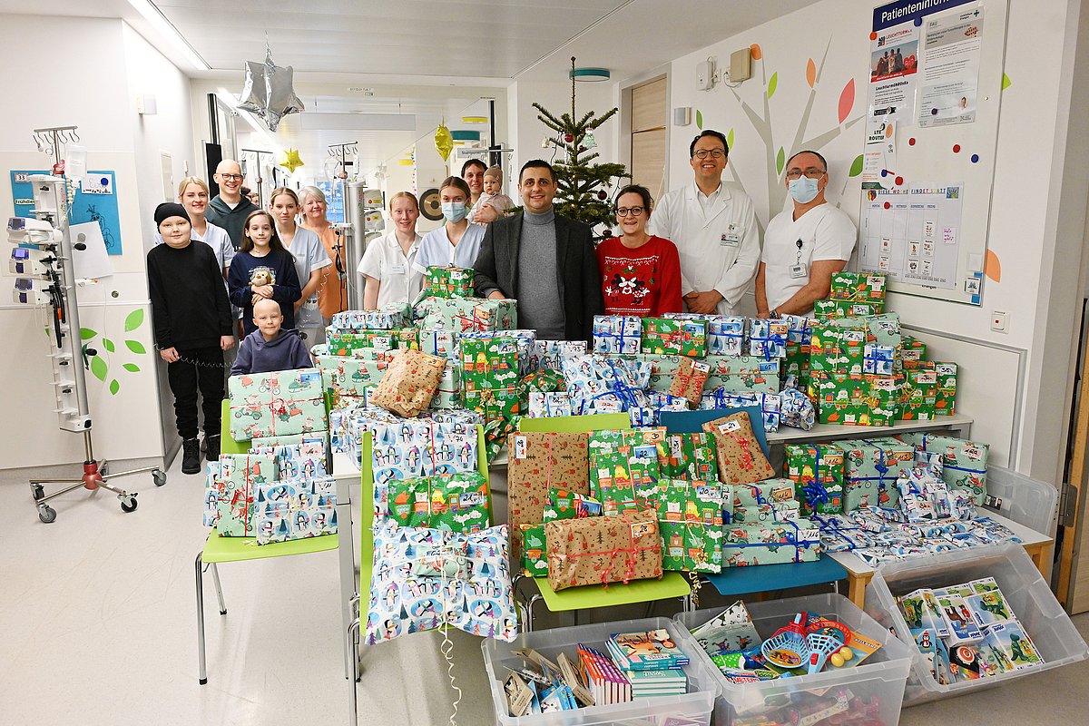 Spielzeug, Bücher, Gutscheine und Schmuck – insgesamt 121 Päckchen wickelten Jeannine Rauch-Kilic und ihr Mann Serok Kilic in der Adventszeit ein. Pünktlich vor Weihnachten brachten sie einen Transporter vollgepackt mit den Geschenken im Gesamtwert von rund 6.600 Euro in die Kinder- und Jugendklinik (Direktor: Prof. Dr. Joachim Wölfle) des Uniklinikums Erlangen. Seit 2014 sammelt das Adelsdorfer Ehepaar jedes Jahr im Familien- und Bekanntenkreis sowie von Mitarbeitenden des Uniklinikums Erlangen Spenden, um damit die persönlichen Weihnachtswünsche der jungen Patientinnen und Patienten der Kinderonkologie (Leiter: Prof. Dr. Markus Metzler) des Uniklinikums Erlangen zu erfüllen. „Unser ganzes Stationsteam erlebt jedes Jahr die große Freude der Kinder und Jugendlichen, wenn ihre Wünsche so liebevoll erfüllt werden“, bedankte sich Prof. Metzler bei der Übergabe. „Jeder solcher Glücksmomente ist wichtig, wenn ausgerechnet die Weihnachtszeit im Krankenhaus verbracht werden muss.“