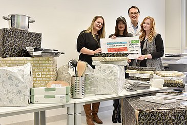 Auf der jährlichen Betriebsversammlung verkauften sie Selbstgebackenes und holten zusätzliche Spenden ihrer Kollegen ein. Schließlich kamen 3.000 Euro zusammen, von denen die jungen Frauen Küchenutensilien, Geschirr, Uhren für die Patientenzimmer und sogar einen Massagestuhl für die Eltern kauften. Die noch übrig gebliebenen 700 Euro überreichten sie in Form eines Schecks. "Wir freuen uns sehr, dass mit diesen Weihnachtsgeschenken auch an die Eltern gedacht wird, die ihren Kindern rund um die Uhr mit viel Kraft den Rücken stärken", sagte Prof. Metzler.