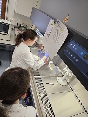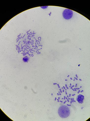 Die Schülerinnen und Schüler im 3. Ausbildungsjahr an der Berufsfachschule für Medizinische Technologie in der Fachrichtung Laboratoriumsanalytik konnten mit ihrer Lehrkraft, Frau Graef, erfolgreich Chromosomen aus EDTA Blut präparieren. Anschließend wurde eine mikroskopische Auswertung nach einer Giemsa-Färbung vorgenommen - ein wirklich spannender Einblick in die praktische Zytogenetik.