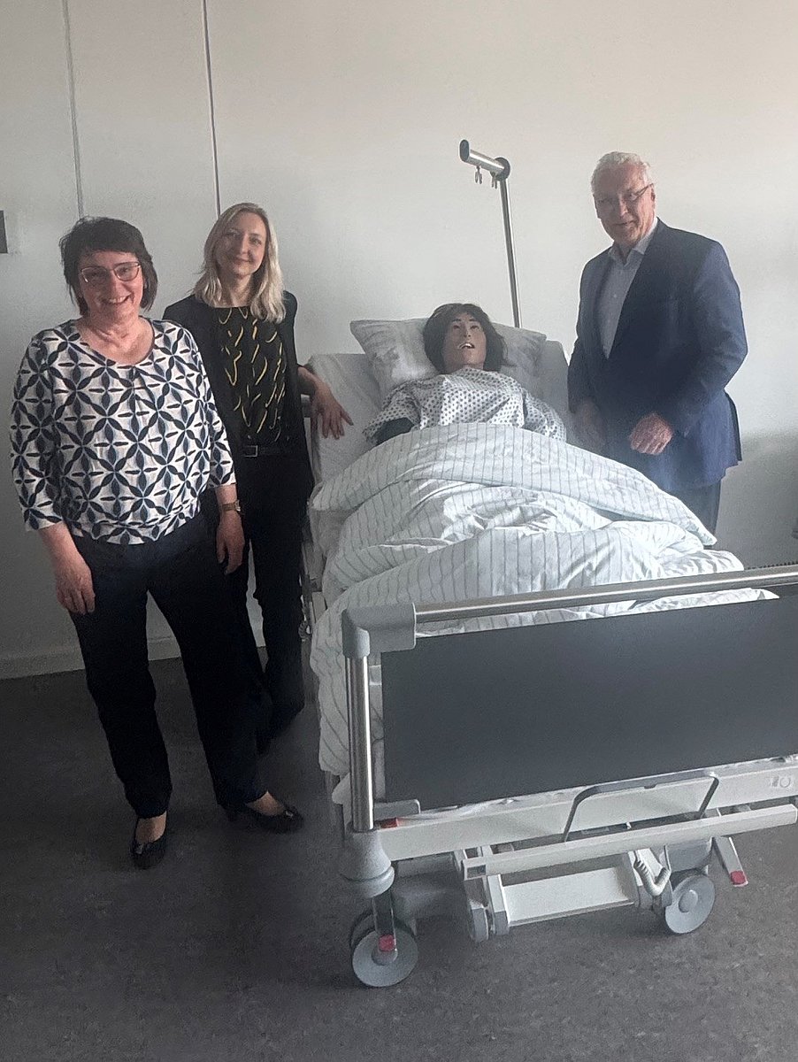 Herr Joachim Herrmann stattete dem BSZG Erlangen am 09.04.2026 einen Besuch ab. Wir danken Herrn Herrmann sehr für sein Engagement für das BSZG Erlangen. Herr Herrmann hatte sich maßgeblich dafür eingesetzt, dass das BSZG Erlangen neue Räumlichkeiten erhält. Letztlich hat seine Initiative dazu geführt, dass das BSZG Erlangen ein neues Schulgebäude anmieten konnte. Am Tag des Besuchs stellte die Schulleiterin des BSZG Erlangen, Frau Krapp und auch Frau Steffan, Leiterin der BFS Pflege, Herrn Herrmann das Forum + vor. Herzlicher Dank geht auch an Herrn Schwed von der BFS Pflege, der das Skills Lab für Herrn Herrmann zum Leben erweckte, so dass Herr Herrmann einen guten Eindruck davon bekam, wie ein guter praxisorientierter Fachunterricht aussehen kann.