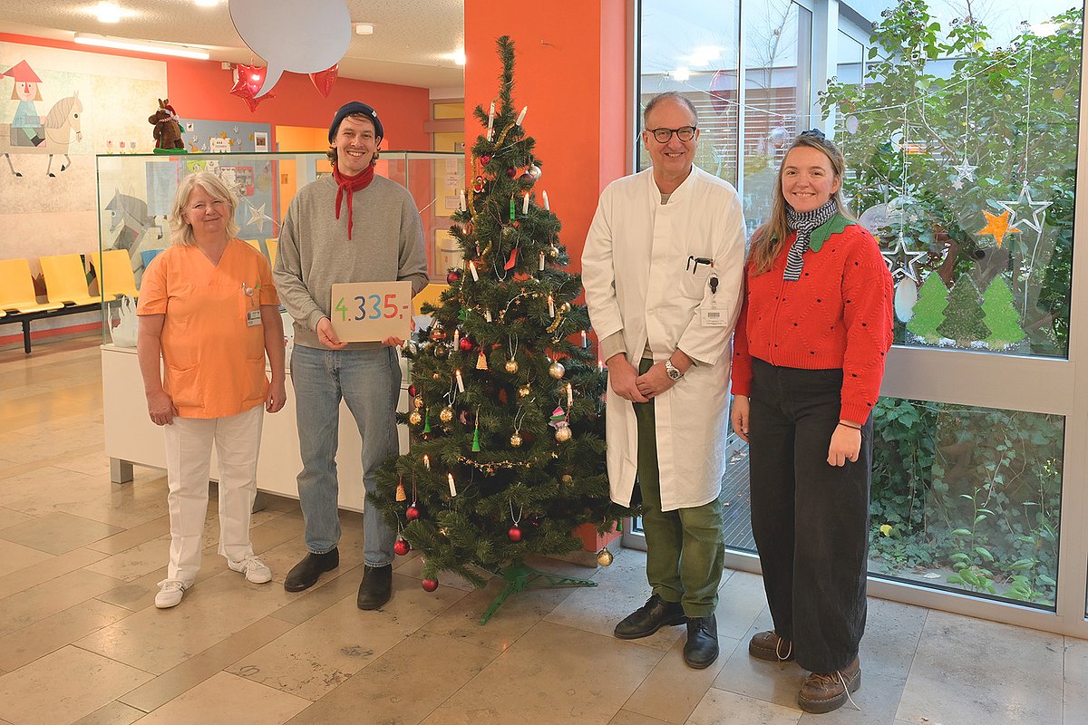 2025 war das Weizen-Bockbier „Justus“ erneut ein Verkaufsschlager. Vincenz und Xaver Schiller vom „Entla’s Bräu Erlangen“ brauten auch in diesem Jahr für den guten Zweck und spendeten nun 4.335 Euro an die Kinder- und Jugendklinik (Direktor: Prof. Dr. Joachim Wölfle) des Uniklinikums Erlangen. Die 1.000 Liter Bier waren bereits zwei Stunden nach Verkaufsstart am 7. Dezember 2025 ausverkauft. Wie gewohnt konnten die Käuferinnen und Käufer dabei den Preis für ihr Sixpack selbst bestimmen.