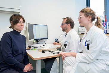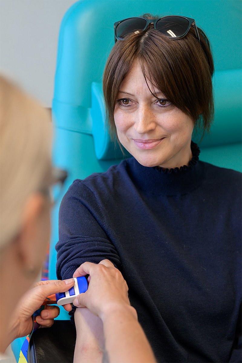 Denn Kerstin F. litt an gleich drei teils seltenen Autoimmunerkrankungen. Bereits 2014 war bei der Brandenburgerin eine autoimmunhämolytische Anämie diagnostiziert worden: Die Antikörper ihres Immunsystems richteten sich fälschlicherweise gegen die Erythrozyten, also die roten Blutkörperchen. „Es begann mit Schmerzen in den Fußknöcheln, Knien und Handgelenken“, berichtet Kerstin F. über ihre allerersten Symptome. „Es fühlte sich an, als ob Glasscherben an meinen Knochen rieben. Oft war es so schlimm, dass mir mein Leben nicht mehr lebenswert erschien.“ Nach der Geburt ihres zweiten Kindes verschlechterte sich Kerstin F.s Gesundheitszustand dramatisch. Im Jahr 2015 wurde bei ihr zusätzlich das sogenannte Antiphospholipid-Syndrom festgestellt: eine Autoimmunerkrankung, die zu erhöhter Blutgerinnung und zu Thrombosen führt. Damit nicht genug, kam 2019 noch die Diagnose Immunthrombozytopenie hinzu: eine Autoimmunerkrankung, bei der Blutplättchen vom eigenen Immunsystem angegriffen und abgebaut werden, sodass Betroffene stark zu Blutungen neigen. „Diese Kombination ist schon sehr außergewöhnlich“, weiß Dr. Isabel Korte, Ärztin der Medizinischen Klinik 5 und Erstautorin der jetzt erschienenen Publikation. „Alle drei Autoimmunerkrankungen werden allerdings von fehlgesteuerten B-Zellen angetrieben. Das ist eine Untergruppe der Abwehrzellen, also der sogenannten weißen Blutkörperchen, die eine entscheidende Rolle bei der Produktion von Antikörpern spielen. Damit hatten wir den gemeinsamen Nenner aller drei Krankheiten und einen eindeutigen Angriffspunkt für unsere Therapie.“