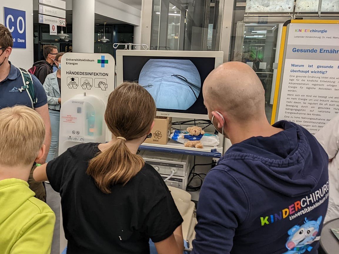 Im Rahmen der 10. Langen Nacht der Wissenschaften am Samstag, 21. Mai 2022, war die Kinderchirurgische Abteilung am Universitätsklinikum Erlangen stark vertreten. Besucherinnen und Besucher konnten laparoskopisch tätig werden und den Alltag eines Kinderchirurgen kennenlernen.