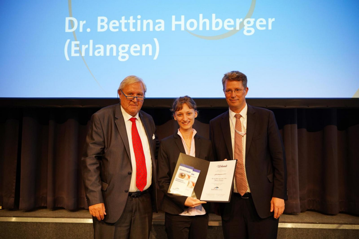 Die Forschungsaktivitäten von Frau Dr. med. Dipl. Mol. Med. Univ. Bettina Hohberger, Fachärztin der Klinik, wurden mit dem diesjährigen Forschungspreis des Bundesverbands AUGE gewürdigt.
