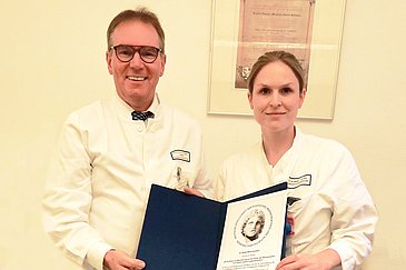 In der ausgezeichneten Forschungsarbeit wird die Auswirkung der Strahlentherapie auf die Durchblutung von sogenannten Lappenplastiken untersucht. Die Bestrahlung spielt eine wichtige Rolle bei der Behandlung von Krebspatientinnen und -patienten. „Dank der Fortschritte der modernen Medizin können auch größere Tumoren heutzutage sicher entfernt und der dadurch entstehende Gewebedefekt mit eigenem Gewebe repariert werden. Dabei wendet man körpereigene Lappenplastiken an, etwa bei der Rekonstruktion der weiblichen Brust“, erläutert Dr. Müller-Seubert. Um den Einfluss der notwendigen Strahlentherapie auf die Durchblutung des Gewebes exakt zu bestimmen, setzte die Erlanger Preisträgerin experimentelle Verfahren ein. Diese dienen letztlich dazu, das genaue Ausmaß etwaiger Durchblutungsstörungen herauszufinden und damit Heilungsstörungen vorzubeugen. „Die von Dr. Müller-Seubert gewonnenen Erkenntnisse bringen uns dem Wunsch, die Reparatur von Gewebedefekten nach Tumoroperationen noch effizienter und sicherer zu machen, einen großen Schritt näher. Dieses neu erworbene Wissen hat damit unmittelbar Bezug zu unserer wichtigsten täglichen Arbeit, nämlich der Sorge um unsere Patientinnen und Patienten“, freut sich Klinikdirektor Prof. Horch mit seiner Oberärztin.