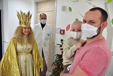 Ein weiterer Höhepunkt der vorweihnachtlichen Veranstaltungen war auch heuer wieder der Besuch des Nürnberger Christkinds, das mit seinem funkelnden Sternengewand und der goldenen Krone echten Glanz in die Krankenzimmer brachte. Die 18-jährige Teresa Windschall nahm sich viel Zeit, um den Kindern und Jugendlichen auf den Stationen persönlich zu begegnen und ihnen sowie allen Patientinnen und Patienten des Uniklinikums Erlangen ein schönes Weihnachtsfest und eine schnelle Genesung zu wünschen.