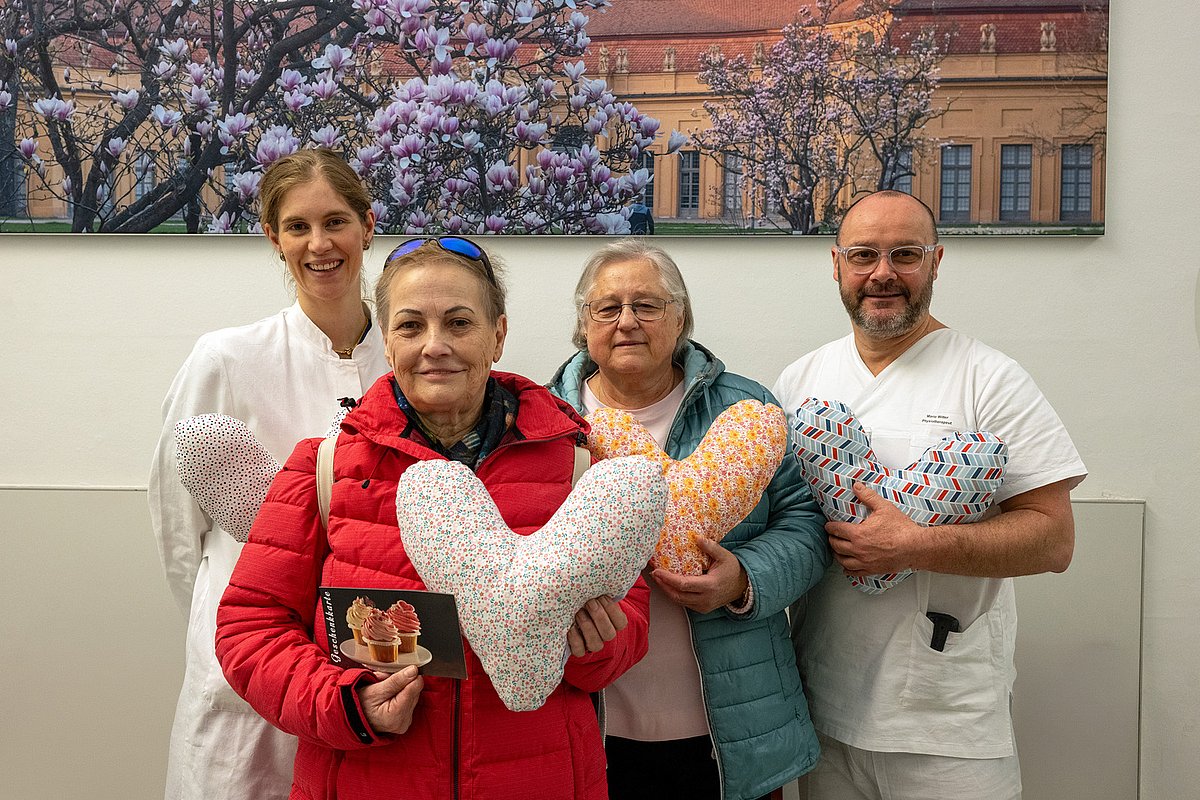 Ehrenamtliche überreichten 80 handgenähte Herzkissen und 80 Trösterkissen für Brustkrebspatientinnen – und zauberten direkt der ersten Patientin ein Lächeln ins Gesicht