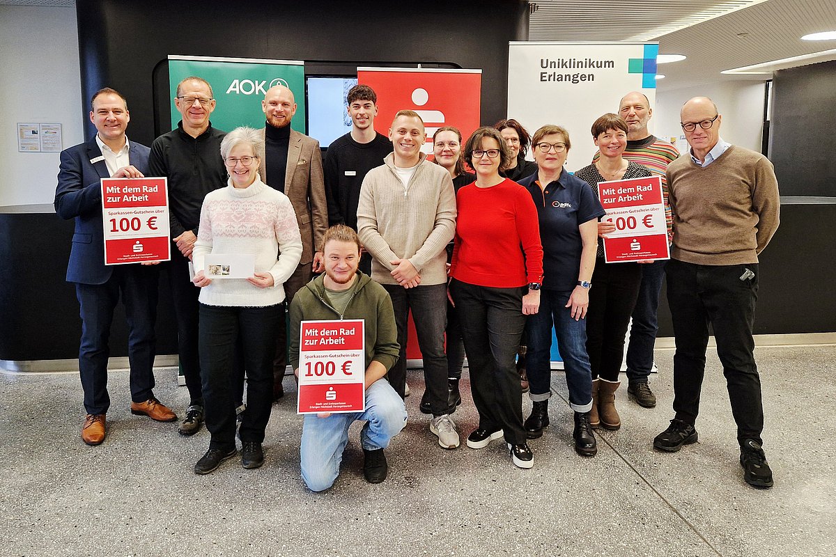 Mitarbeitende des Uniklinikums Erlangen sammelten bei der Aktion „Mit dem Rad zur Arbeit“ der AOK 16.722 Kilometer – eine von ihnen wurde nun ausgezeichnet
