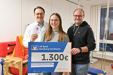Rund 400 Menschen kamen zu der ehrenamtlich organisierten Aktion am 6. Dezember an der Christbaumkultur in Kauernhofen. „Alle waren begeistert, als sie hörten, dass das Geld der Kinderonkologie zugutekommen soll“, berichtete Michael Seitz. Für ihn und seine Frau war der Spendenzweck naheliegend, denn der nebengewerbliche Christbaumanbauer arbeitet hauptberuflich in der Fachabteilung Maschinentechnik des Uniklinikums Erlangen. „Uns war es ein Anliegen, dass die jungen Patientinnen und Patienten trotz ihrer schweren Erkrankung auch mal fröhliche Momente erleben können“, ergänzte Lena Seitz. „Die Summe soll deshalb in den Bereich Spielen und Lernen fließen.“ Prof. Dr. Markus Metzler, Leiter der Kinderonkologie, bedankte sich bei der Spendenübergabe herzlich: „Wir sind sehr dankbar für diese Unterstützung. Es ist wunderbar zu sehen, wie viel Engagement aus der Region kommt – und die Kinder und Jugendlichen werden direkt davon profitieren.“
