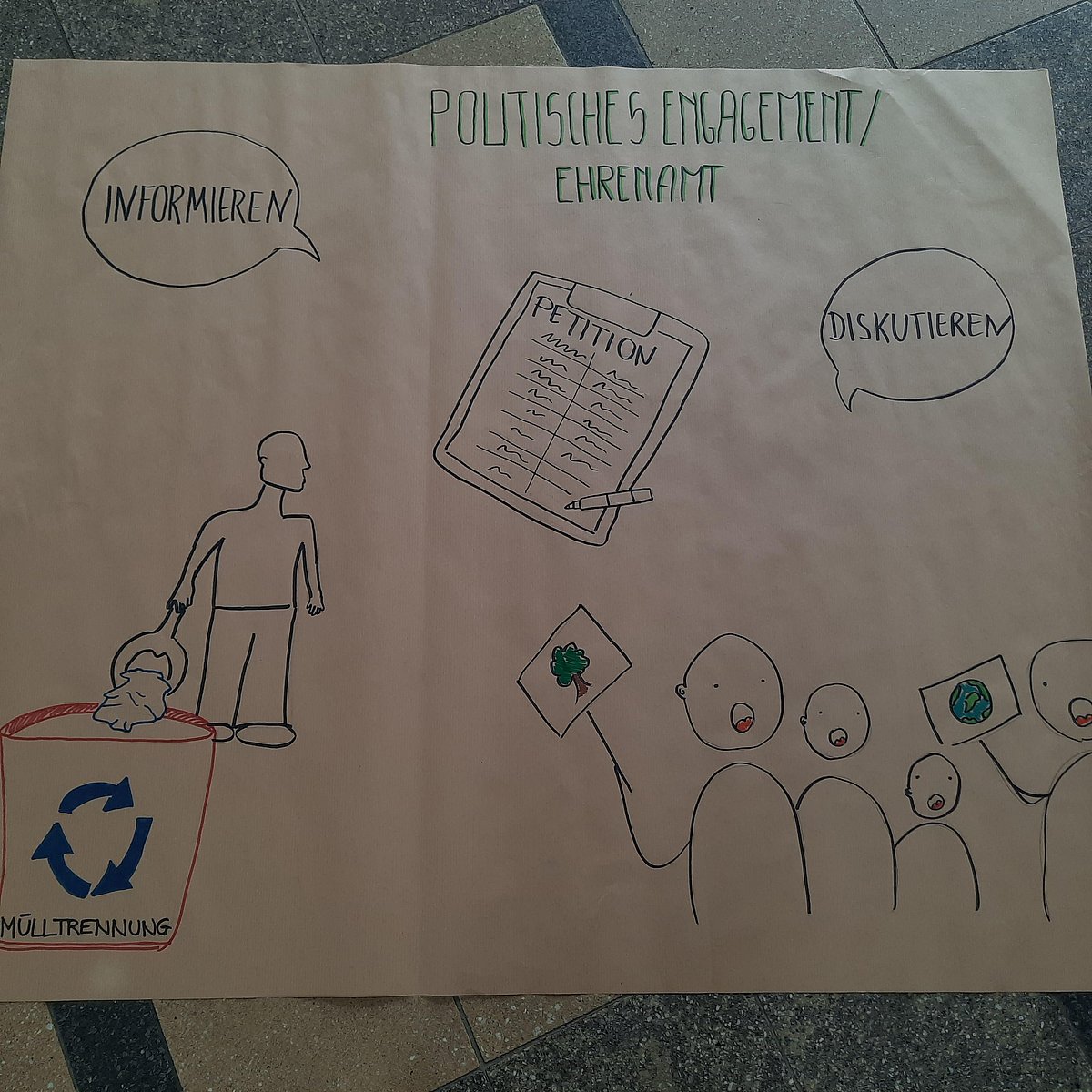 Am 16. Oktober 2023 fand der BSZG-Umweltprojekttag "Unsere Energiewende in Erlangen" statt, der von 8:15 bis 14:00 Uhr dauerte. Das Projekt wurde von dem Verein Multivision durchgeführt und finanziell sowie durch Präsenz und Vorträge von den Stadtwerken und dem Umweltamt der Stadt Erlangen unterstützt. Fünf Klassen aus drei verschiedenen Schulen - Pflege, Massage und die MT-Schule nahmen an dieser Veranstaltung teil. Die Schüler und Schülerinnen zeigten großes Engagement und Kreativität, indem sie in Gruppen Plakate erstellten, auf denen sie ihre zukunftsorientierten Ideen zu verschiedenen vorgegebenen Umweltthemen präsentierten.