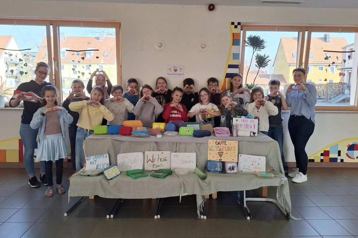 Mit viel Einsatzbereitschaft setzten die Schülerinnen und Schüler der Klasse 4c der Grundschule Baiersdorf ein nachhaltiges Projekt um, dessen Erlös jetzt den krebskranken Patientinnen und Patienten der Kinder- und Jugendklinik des Uniklinikums Erlangen zugutekommt. „Immer wieder bleiben in der Schule Brotdosen liegen, die nicht mehr abgeholt werden. Statt sie wegzuwerfen, überlegten wir uns eine sinnvolle Verwendung dafür“, erklärte Julia Linhardt, Klassenlehrerin der 4c, den Auslöser für das Projekt. Die zurückgelassenen Brotdosen wurden gesammelt und sorgfältig gereinigt. Beim Sommerfest und auf dem Weihnachtsmarkt der Schule gaben die Grundschülerinnen und -schüler die Behälter dann gegen einen kleinen Beitrag weiter. Durch diesen Einsatz der Kinder und dank einer großen Spendenbereitschaft kamen beachtliche 120 Euro zusammen, für die Prof. Dr. Markus Metzler, Leiter der Kinderonkologie, der Schulklasse ein sehr herzliches Dankeschön ausrichten ließ.