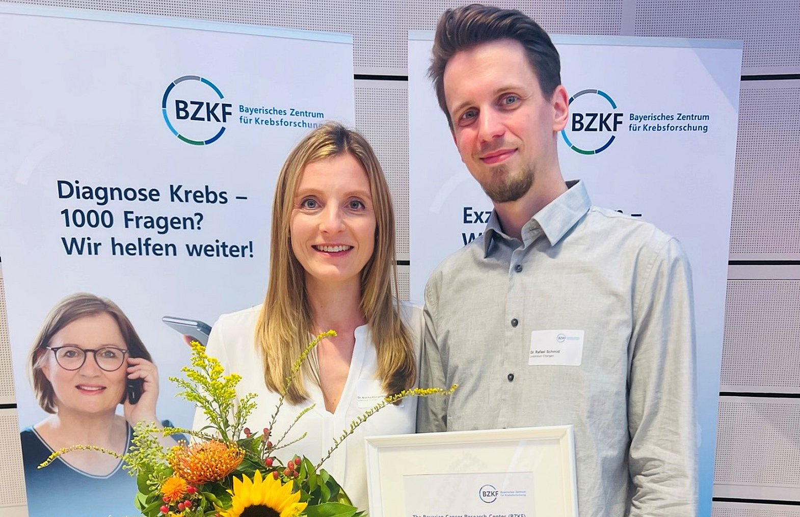 Beim diesjährigen dritten Netzwerktreffen des Bayerischen Zentrums für Krebsforschung (BZKF) in München wurden die Nachwuchsforscherin PD Dr. Annika Kengelbach-Weigand und der Nachwuchsforscher Dr. Rafael Schmid von der Plastisch- und Handchirurgischen Klinik (Direktor: Prof. Dr. Dr. h. c. Raymund E. Horch) des Uniklinikums Erlangen für ihre Publikation „A New Printable Alginate / Hyaluronic Acid / Gelatin Hydrogel Suitable for Biofabrication of In Vitro and In Vivo Metastatic Melanoma Models“ mit dem Publikationspreis ausgezeichnet. Ihre Arbeit war 2022 in der Fachzeitschrift Advanced Functional Materials erschienen.